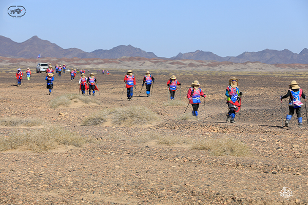 第三天,華姐和九戈是第一個到達的。九戈張總的精神鼓舞著我,他的腳長了好多個血泡,脫下襪子都是血皮一起拉下的,他是怎樣忍痛前行的呢?和他一起走過,他簡單的一句“既然都是要走過去的,快走和慢走都要走,就走快一點吧,況且我還是扛著隊旗,更不可以慢走”!是責任是擔當,是企業家精神。荒漠中我們個人很渺小,站在優秀的伙伴邊也覺得自己很渺小。那也許是華姐從最后一個走到最前一個的動力吧!