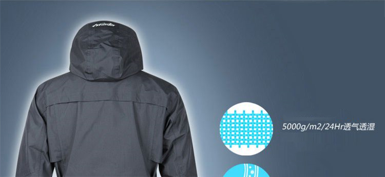 2、透氣指數:透氣指數是衡量織物透氣性的重要指標。 長效透氣,保持身體恒溫,獲得干爽舒適體驗。 是指在一平方米的面積內,每天可以傳輸多少克水蒸氣。 一般來說,夾克的透氣指數在3000g/m^2/24Hr以上,防水指數在5000mmH2O以上,可以保證穿著者下雨時不會被淋濕,滿足適度運動還可以排汗透氣透濕。