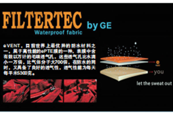 則EVENT使用了GORE-TEX面料的品牌沖鋒衣售價(jià)高達(dá)幾千上萬(wàn)元,一般的戶外愛(ài)好者常常只能是“望衣興嘆”。而誕生比GORE-TEX略晚的EVENT面料的性價(jià)比似乎要高一些,兩者都被稱(chēng)為頂級(jí)沖鋒衣的面料。EVENT技術(shù)上使用了與GORE-TEX完全不同的思路,它使用一種全新的EPTFE織物(不是覆膜)工藝,這種織物具有極其穩(wěn)定的化學(xué)性能,適用的溫度范圍更廣,而且耐老化。面料層的小孔雖然比EPTFE覆膜的分子透氣孔大,但是依然能夠稱(chēng)職地將雨水阻隔在面料外部,即使最小的水珠(霧珠)也不能輕易通過(guò)。而且擴(kuò)大的透氣孔讓透氣性能幾乎與傳統(tǒng)織物面料沒(méi)有差別。