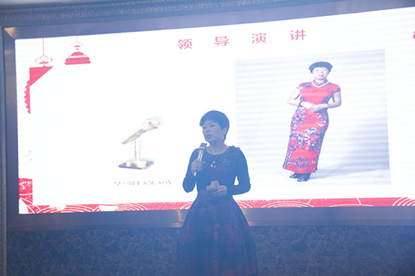 年會正式開始,睿??偨浝砣A姐上臺發表激情演講,總結2018年工作得失,市場發展前景,鄭地有聲地向大家描繪了睿牛制衣2019的新思路,新行動,“乘夢飛翔,再創2019輝煌”。