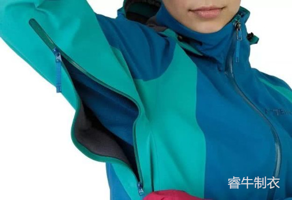 多數沖鋒衣都有設計在腋下散熱拉鏈的,它的作用是讓使用者在戶外活動中,根據實際使用情況調節服裝內的溫度。對于專業沖鋒衣來說,拉鏈一般都采用防水功能的產品。而滑雪服因為其運動的特點,一般是把拉鏈設計在胸口附近或者上肢的前方。和沖鋒衣的相同的是。滑雪服的高檔產品也使用防水拉鏈。