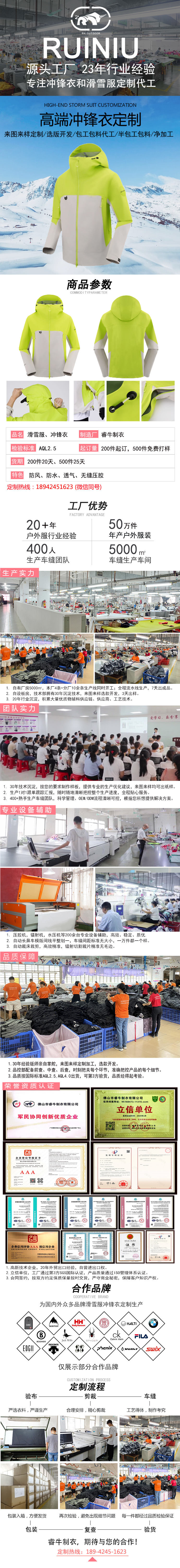 優質面料:專業高端沖鋒衣定制23年沉淀優質供應商資源,可根據客戶需求精選優質面料。