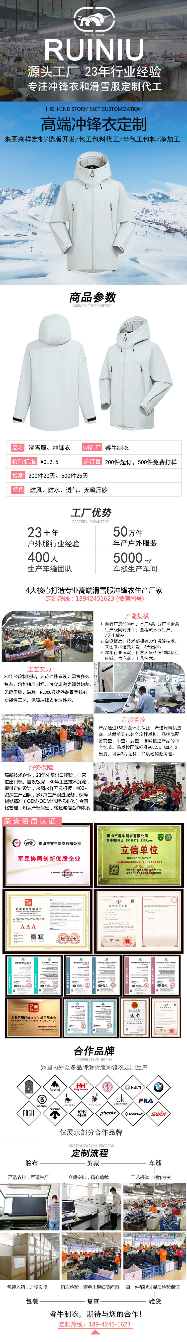 持續23年專注沖鋒衣、滑雪服定制加工廠家