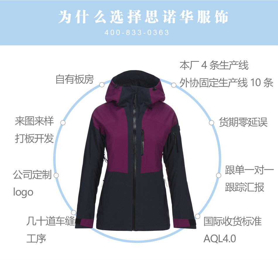 思諾華服飾—三合一沖鋒衣定做廠家定制生產(chǎn)壓膠沖鋒衣